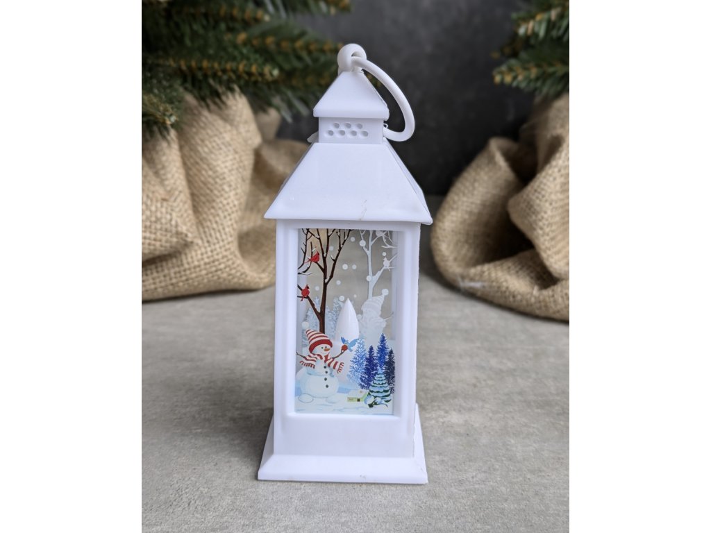 Biela Mini LED lucerna 5941 so snehuliakom 14x5,5x5,5cm