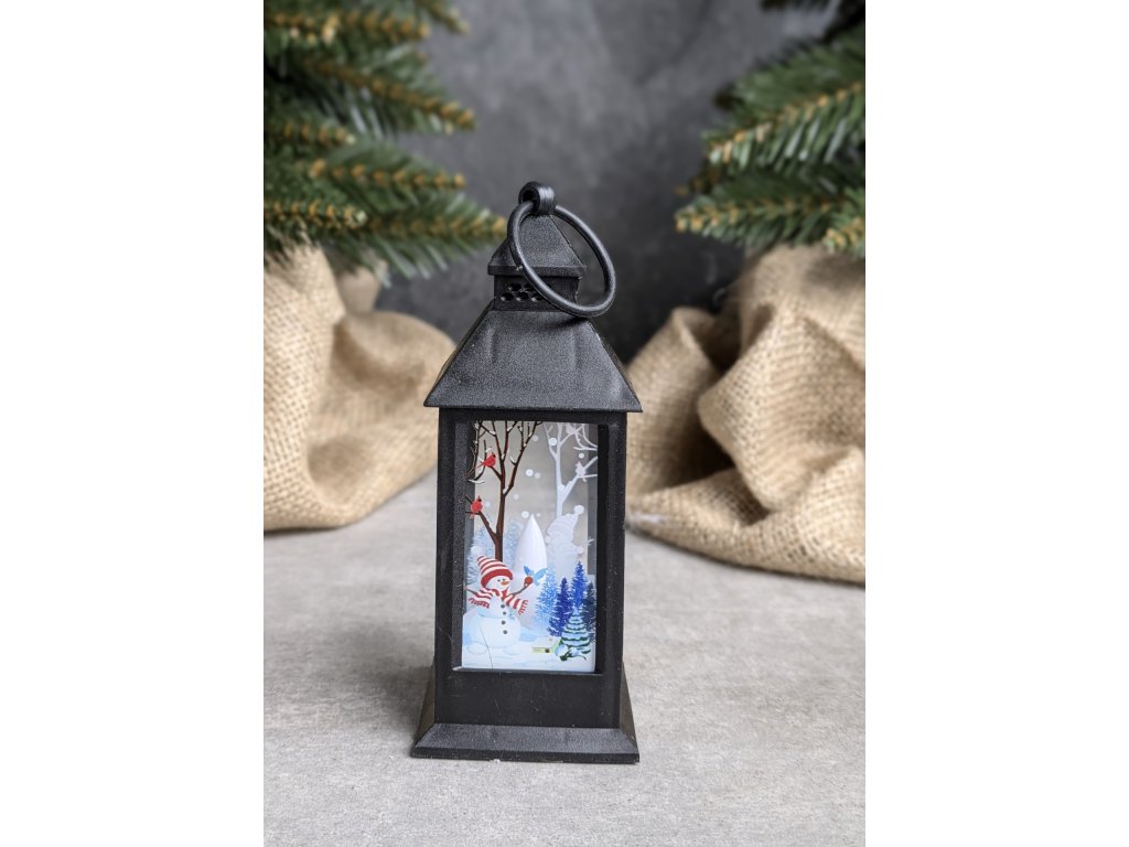 Čierna Mini LED lucerna 5941 so snehuliakom 14x5,5x5,5cm