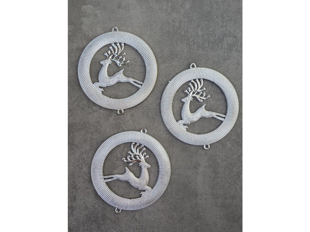Dekorácia na stromček s jeleňom 19046 11cm strieborna 3 kusy