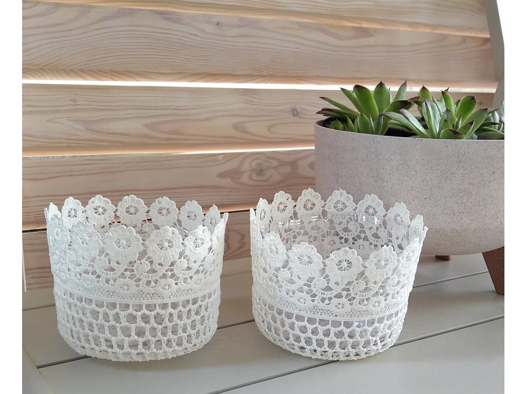 Hačkovaný škrobený obal na kvetináč. Obsahuje plastovú priesvitnú vložku. Výška 10cm Horný priemer: 13cmBuďte prvý, kto napíše príspevok k tejto položke.