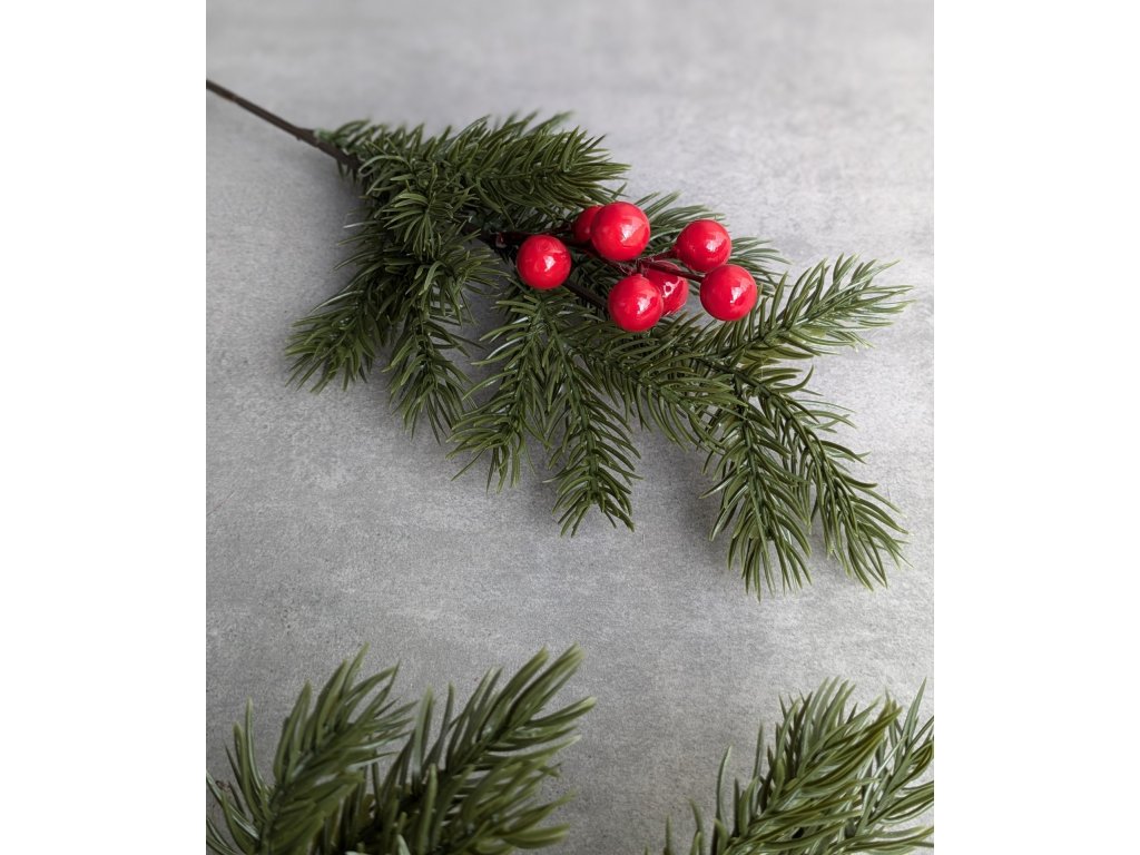 ihličnatá vetvička Smrek PE s červeno-bordovými guľkami 38cm