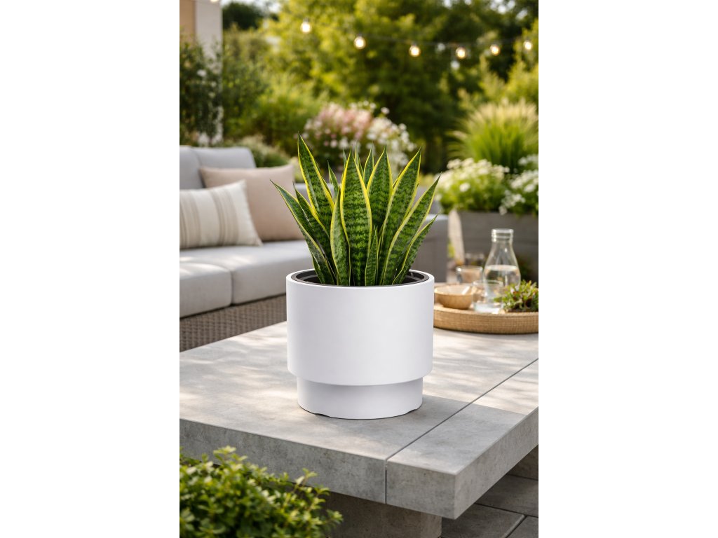 Biely povrch vytvára krásny kontrast so zeleňou a farebnými kvetmi, čím zvýrazňuje ich prirodzenú krásu. Kvetináč je vyrobený z kvalitného plastu, ktorý je ľahký, pevný a odolný voči poveternostným podmienkam. Vhodný je na použitie doma, na terase aj v záhrade.