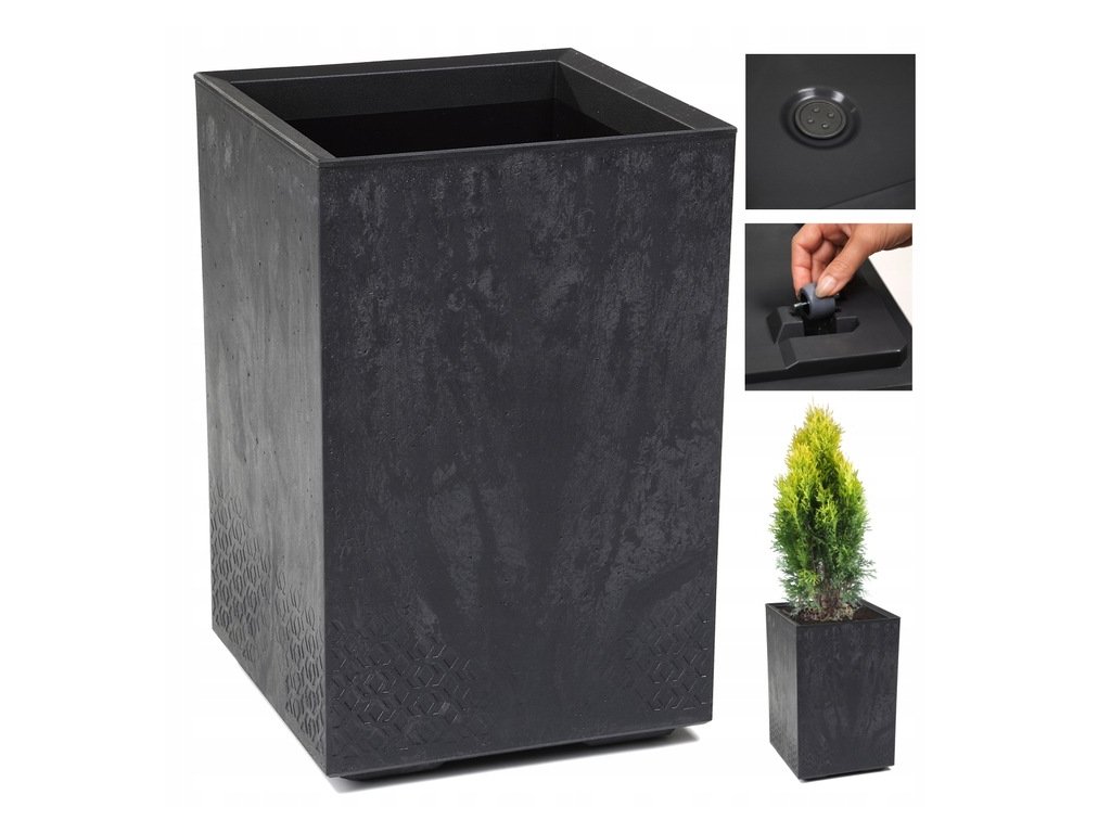 KVETINÁČ MISKA S KVETINÁČOM VYSOKÁ KOMODA KARO ČIERNÝ BETÓN 40x40x60cm Výška výrobku 60 cm