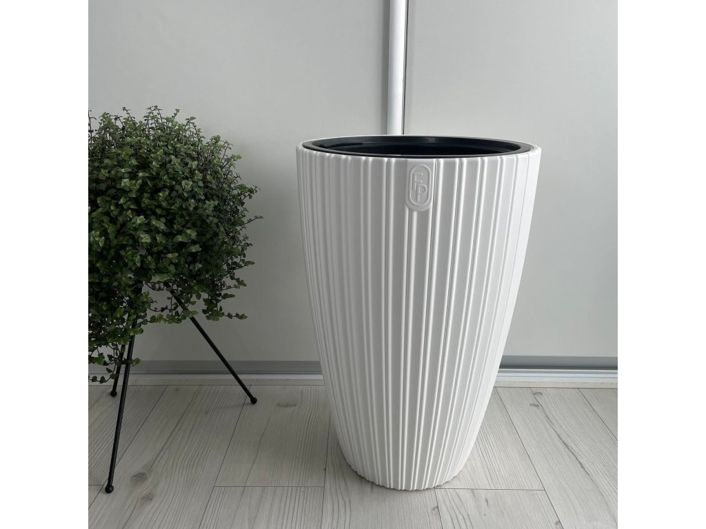 Odolné a mrazuvzdorné kvetináče s plastovou vložkou pre ľahšiu manipuláciu. Odolné voči UV žiareniu. Vhodné do exteriéru aj interiéru. Rozmery kvetináča: Výška: 59,5cm Vonkajší priemer: 39cm Rozmery plastovej vložky pre výsadbu /vnútorné rozmery pre zeminu/: Výška: 22cm Priemer: 30cmDodatočné parametre