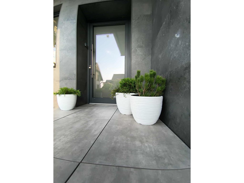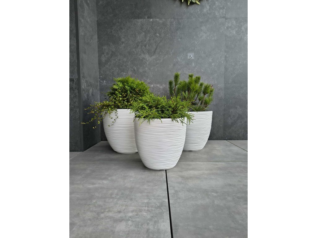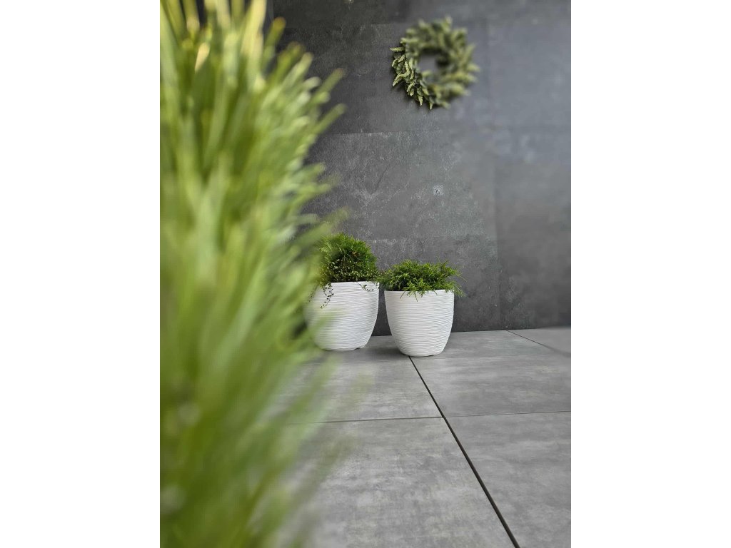 Kvetináče majú vnútri praktický vyberateľný vklad, ktorý uľahčuje sadenie aj presádzanie rastlín a zároveň šetrí zeminu. Ich moderná povrchová úprava so štruktúrou pôsobí nadčasovo a vynikne na terase, balkóne aj v záhrade.