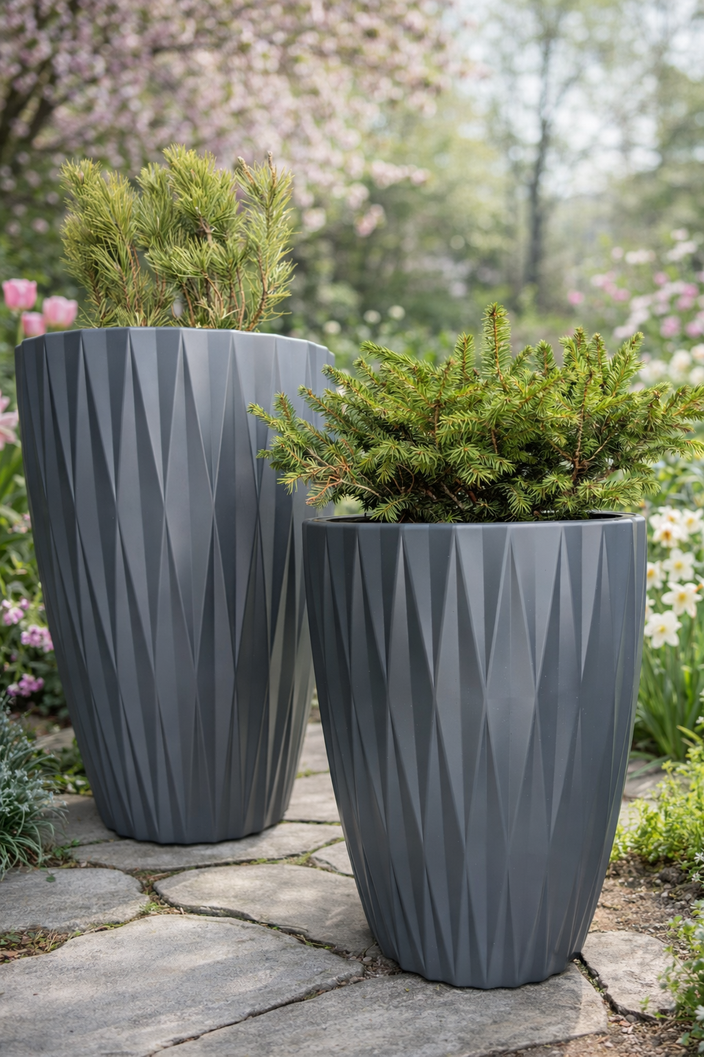 Kvetináč je vhodný pre okrasné trávy, menšie stromčeky, izbové aj vonkajšie rastliny. Antracitový farebný odtieň pôsobí čisto a elegantne a ľahko sa kombinuje s ostatnými doplnkami.