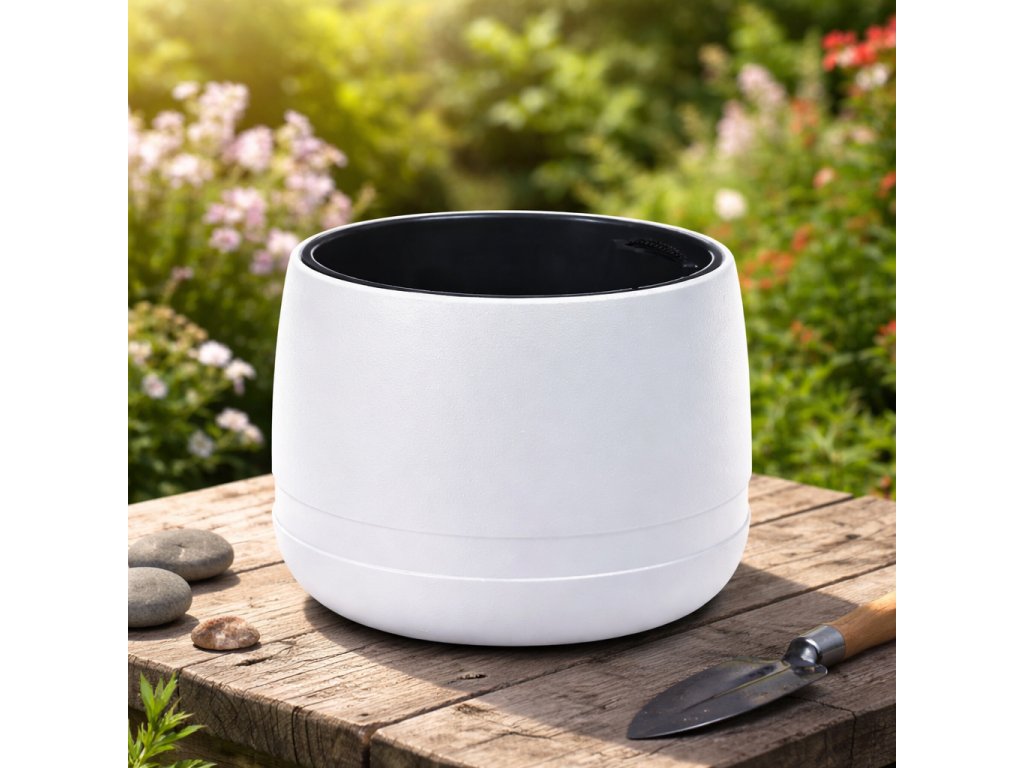 Moderný kvetináč KOMA s priemerom 420 mm je praktickou a dizajnovou voľbou pre interiér aj exteriér. Je vyrobený z kvalitného plastu, ktorý je odolný voči mrazu, UV žiareniu aj vlhkosti, takže je vhodný na celoročné používanie.