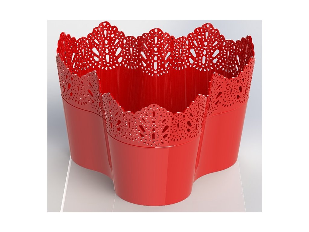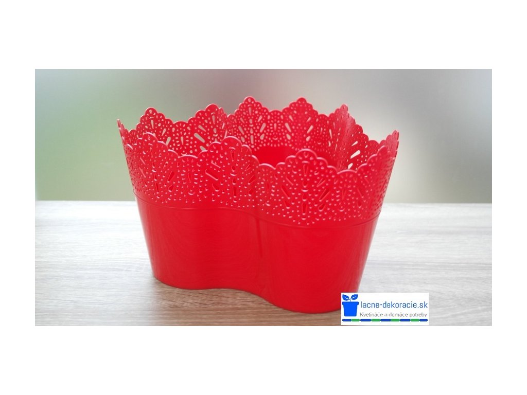 Obal na kvetináče Trojka s čipkou 24cm, červený
