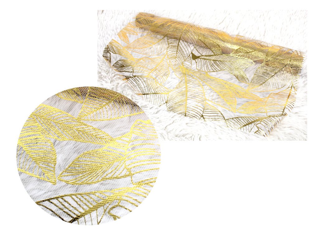 Organza šírka 48 cm, dĺžka 450 cm 55509 zlaté lístie