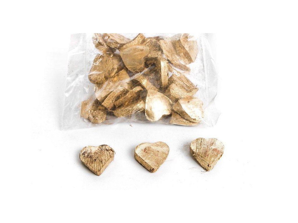 Srdiečka s trblietkami z kôry 3882 zlaté sada 25 kusov