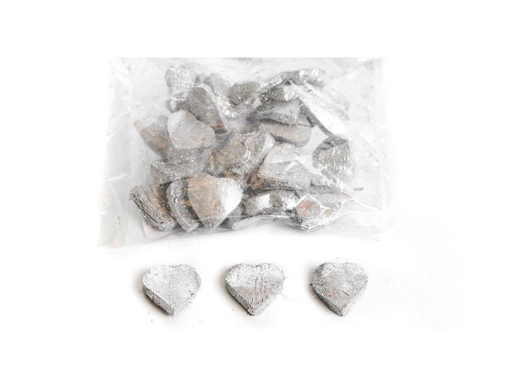 Srdiečka s trblietkami z kôry 3884 strieborné sada 25 kusov