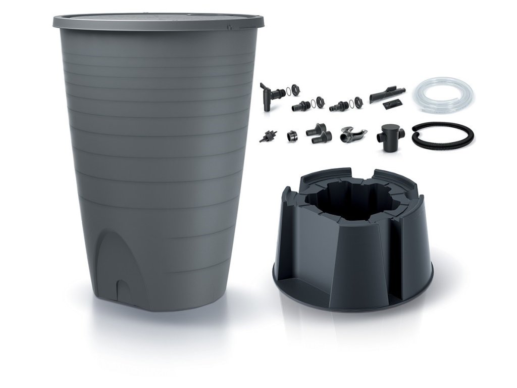 Sud na dažďovú vodu s podstavcom a příslušenstvom PERUNO SET svetlo šedý 260l