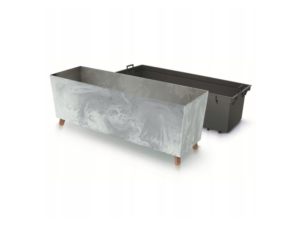 Efektný kvetináč z kvalitného plastu s originálnym vzhľadom imitujúcim betón je ideálnym riešením pre ľudí, ktorí ocenia jednoduchý dizajn. Je navrhnutý v škandinávskom štýle a spája modernu a klasiku. Zdôrazní krásu nielen typických zelených rastlín, ale aj sukulentov a dekoratívnych kvetov. Truhlík má 4 stabilné podpery - nohy pripomínajúce drevo, ktoré sú tiež vyrobené z kvalitného plastu. Materiál: plast Konštrukcia: betón Farba: betón Tvar: lichobežník Dĺžka: 77 cm Šírka: 23,5 cm Výška: 30 cm Objem: 27L Počet krížových vzper: 2Dodatočné parametre