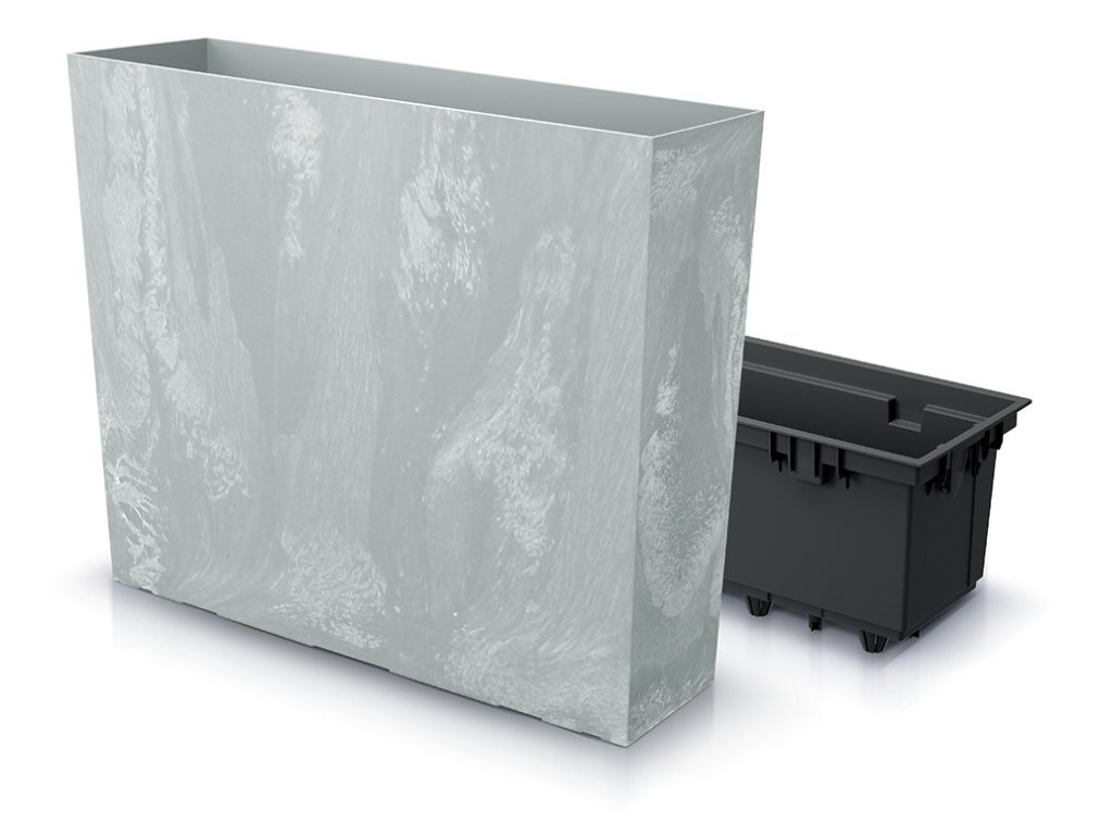 Plastový truhlík s vložkou s betónovým vzhľadom. Moderný a jednoduchý dizajn pre priaznivcov moderného štýlu bývania.