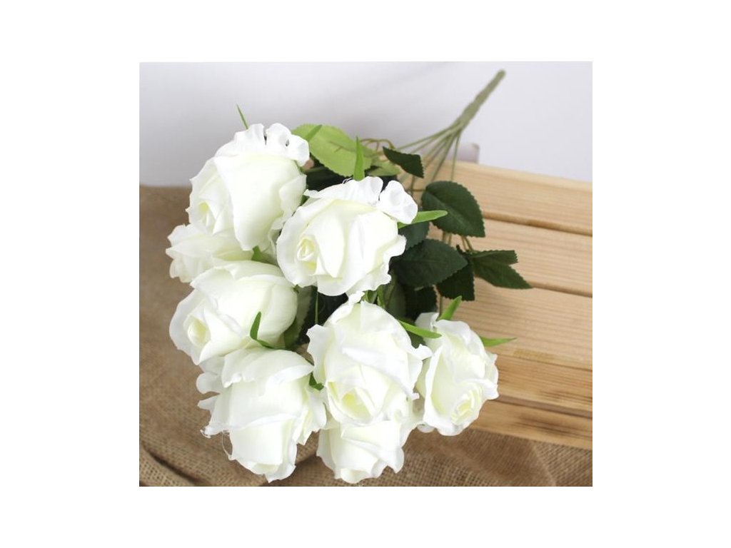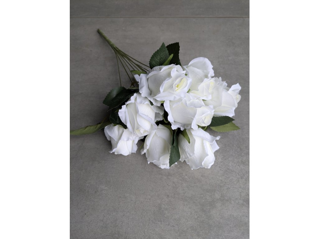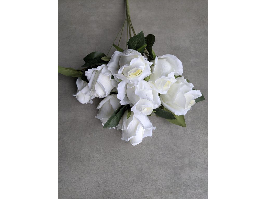 Umelá kytica bielych ruží 9X 2956A 44 cm