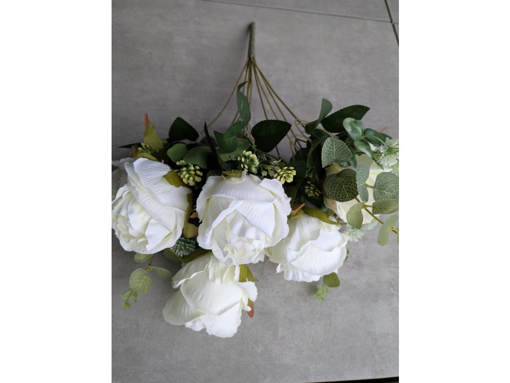 Bohatá umelá kytica pivónií v ružových odtieňoch zaujme plnými kvetmi a hustým spracovaním. Doplnená o zelené lístie a drobné detaily pôsobí prirodzene a výrazne. Vďaka dĺžke 48 cm je ideálna do samostatnej vázy, väčších dekorácií alebo aranžmánov. Vhodná na celoročnú výzdobu bez údržby.