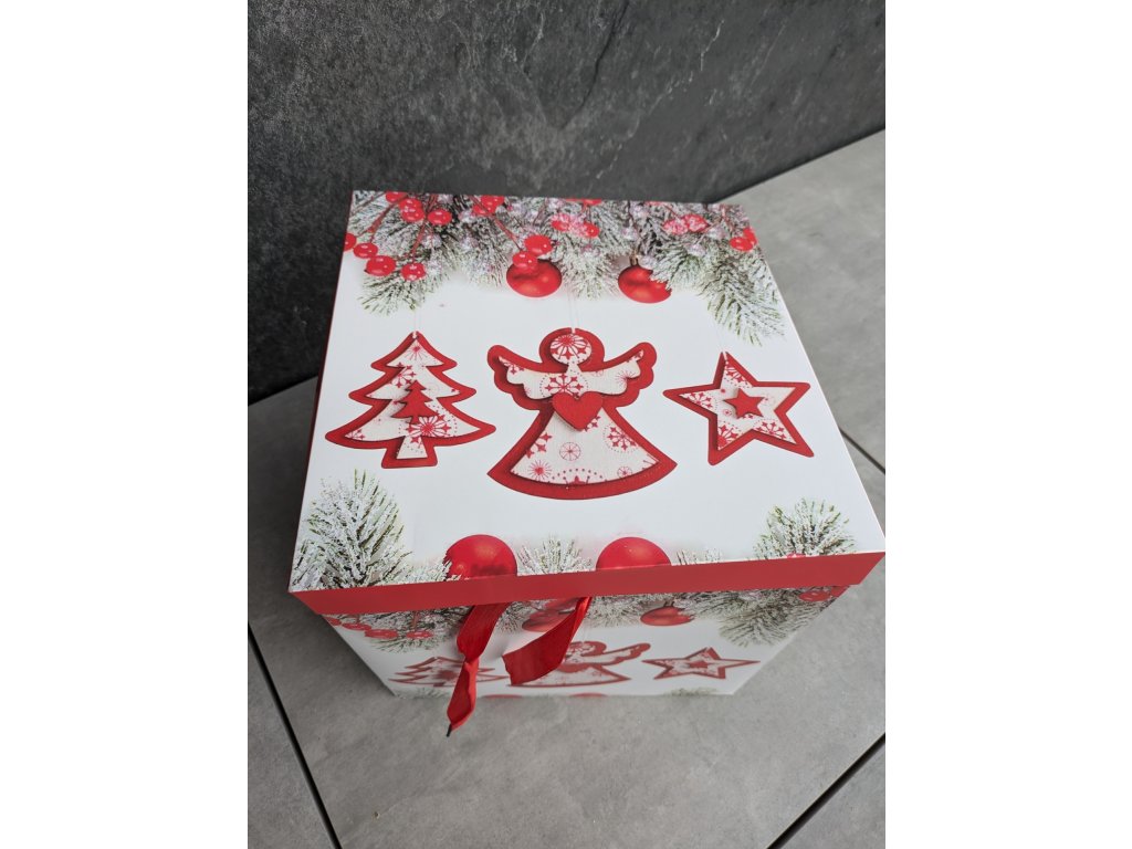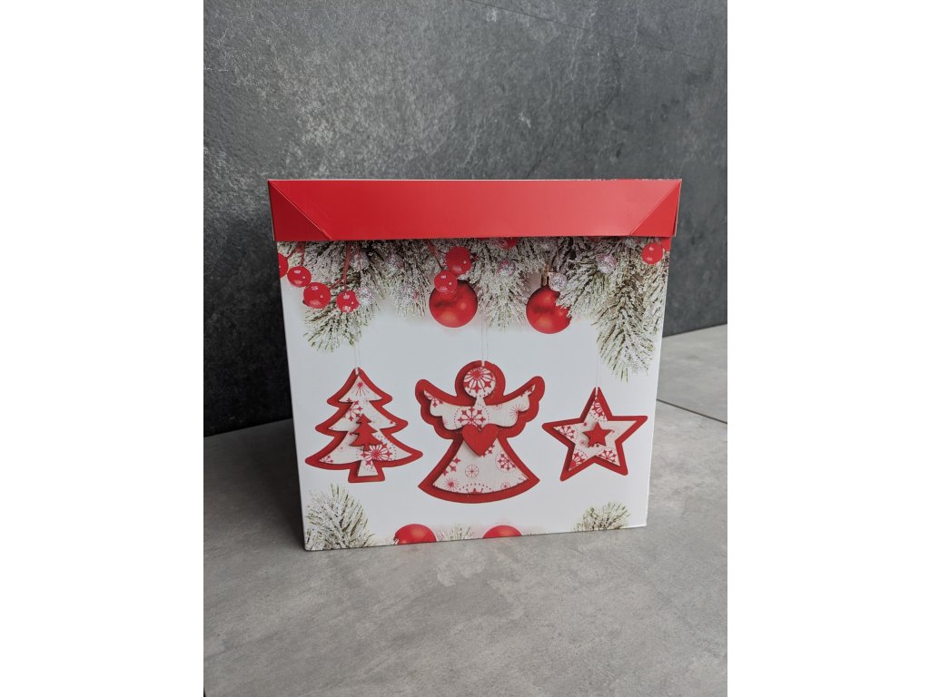 Vianočná darčeková krabička, biela, 28x28 cm, anjelik