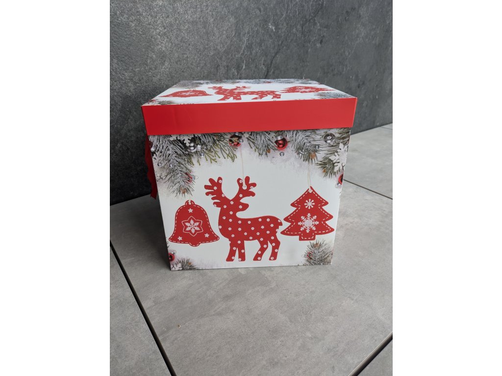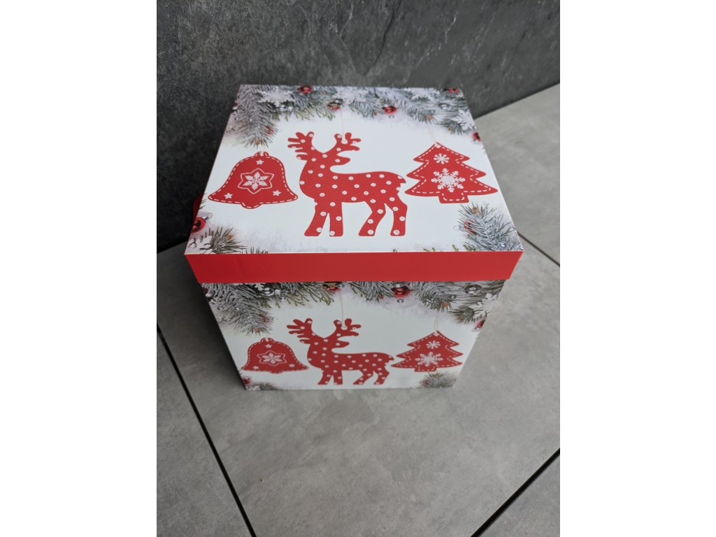 Vianočná darčeková krabička, biela, 28x28 cm, sob-zvonček-stromček