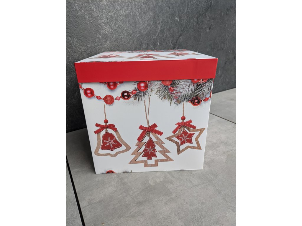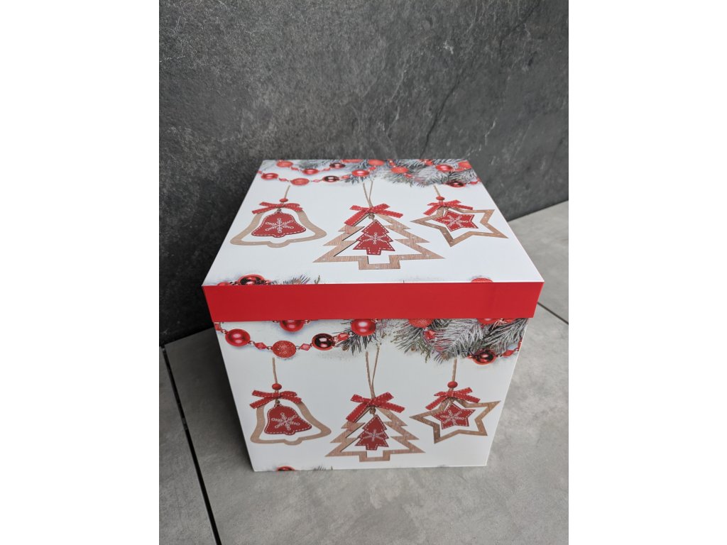 Vianočná darčeková krabička, biela, 28x28 cm, stromček-hviezdička-zvonček