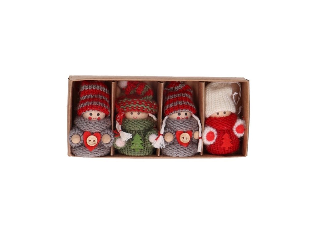 Závesné ozdoby na stromček. Vianočný čas je pre každého z nás nádherným obdobím. Vďaka vianočnej výzdobe sú domy plné radosti, lásky a tepla. Spestrite si vianočný stromček milými bábikami. Vyrobené sú z dreva, vlny. Vynikajú perfektným spracovaním s perfektnými detailami. Výška: cca: 7cm bez zavesenia Sada obsahuje 4kusy ozdôb balené v priesvitnej kazete. Produkt slúži výlučne ako ozdoba, držte mimo dosah detí!Buďte prvý, kto napíše príspevok k tejto položke.