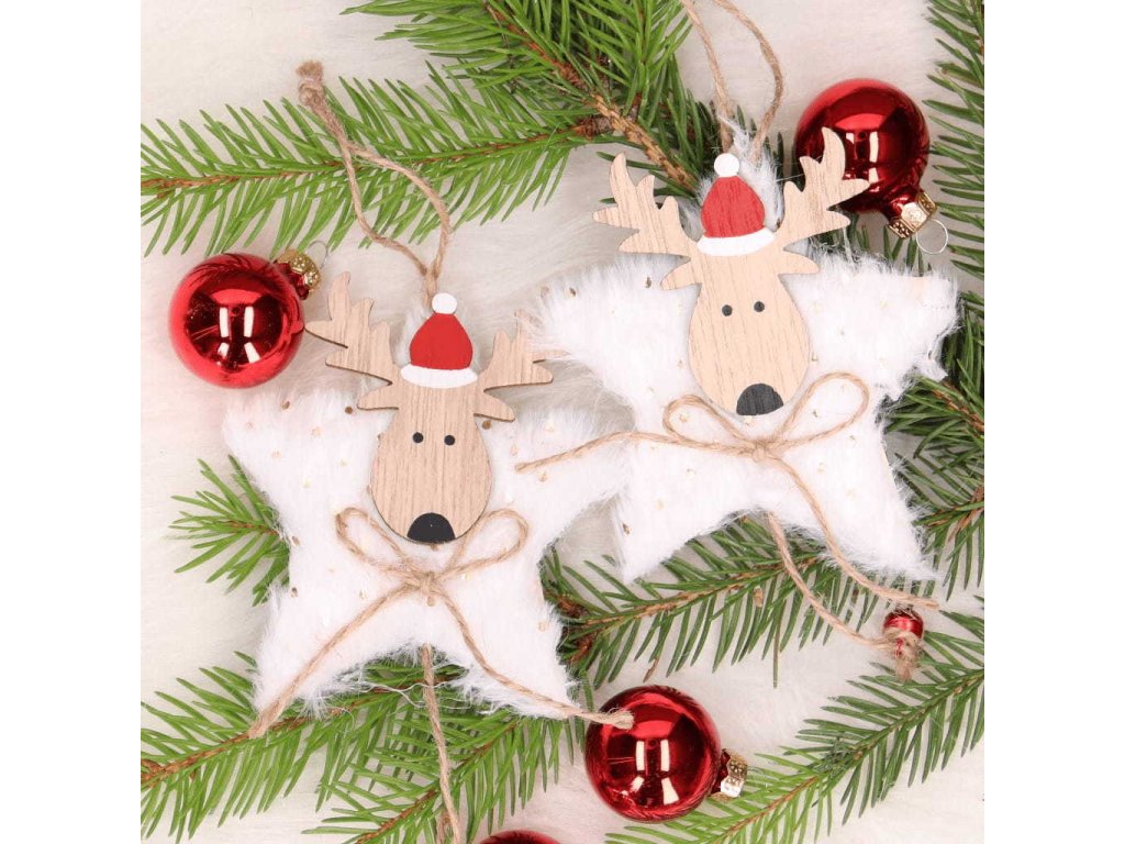 Veľkosť dekorácie: 14 x 9 cm + 8 cm šnúrka Materiál: drevo Cena za 2 kusy Vianočná dekorácia na zavesenie