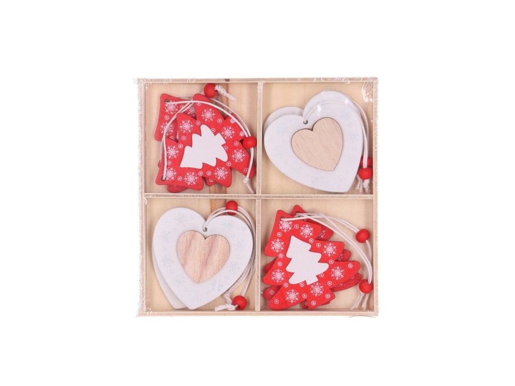 Závesné drevené dekorácie na vianočný stromček v drevenej krabičke. Materiál: drevo Rozmery: cca. 5,5 x5cm V balení je 8kusov. Z každej farby po 4ks.Buďte prvý, kto napíše príspevok k tejto položke.