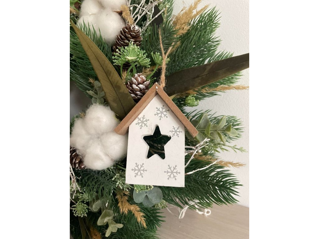 Drevený domček s vyrezávanou hviezdičkou bude krásna vianočná ozdoba pre vyznávačov prírodných dekorácii. Rozmery domčeka Výška 8,8cm Dĺžka: 7cm Hĺbka: 1,8cmBuďte prvý, kto napíše príspevok k tejto položke.