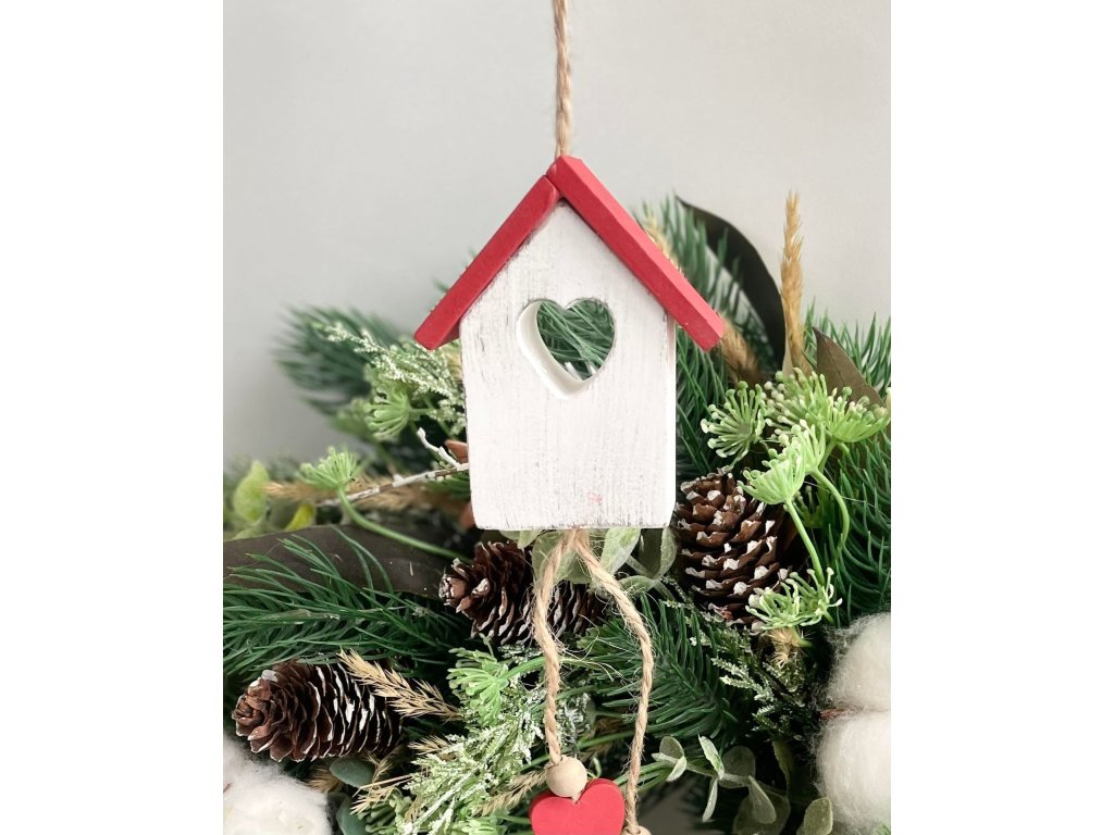 Závesný Domček so srdiečkom 774-1 bielo-červený
