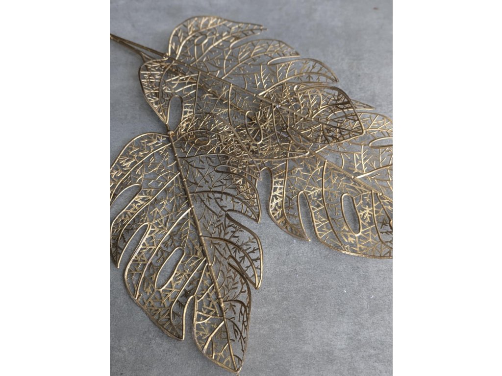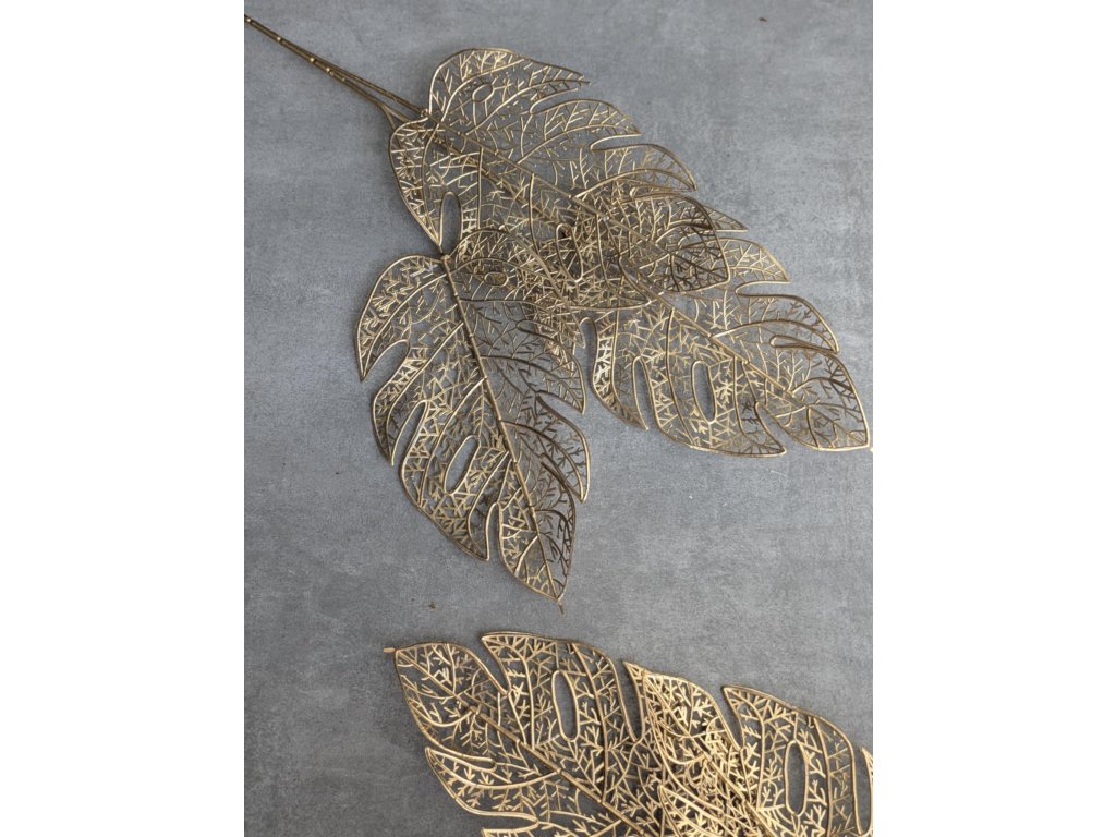 Zlatá dekoratívna vetvička Monstera 111 3 listy 68cm